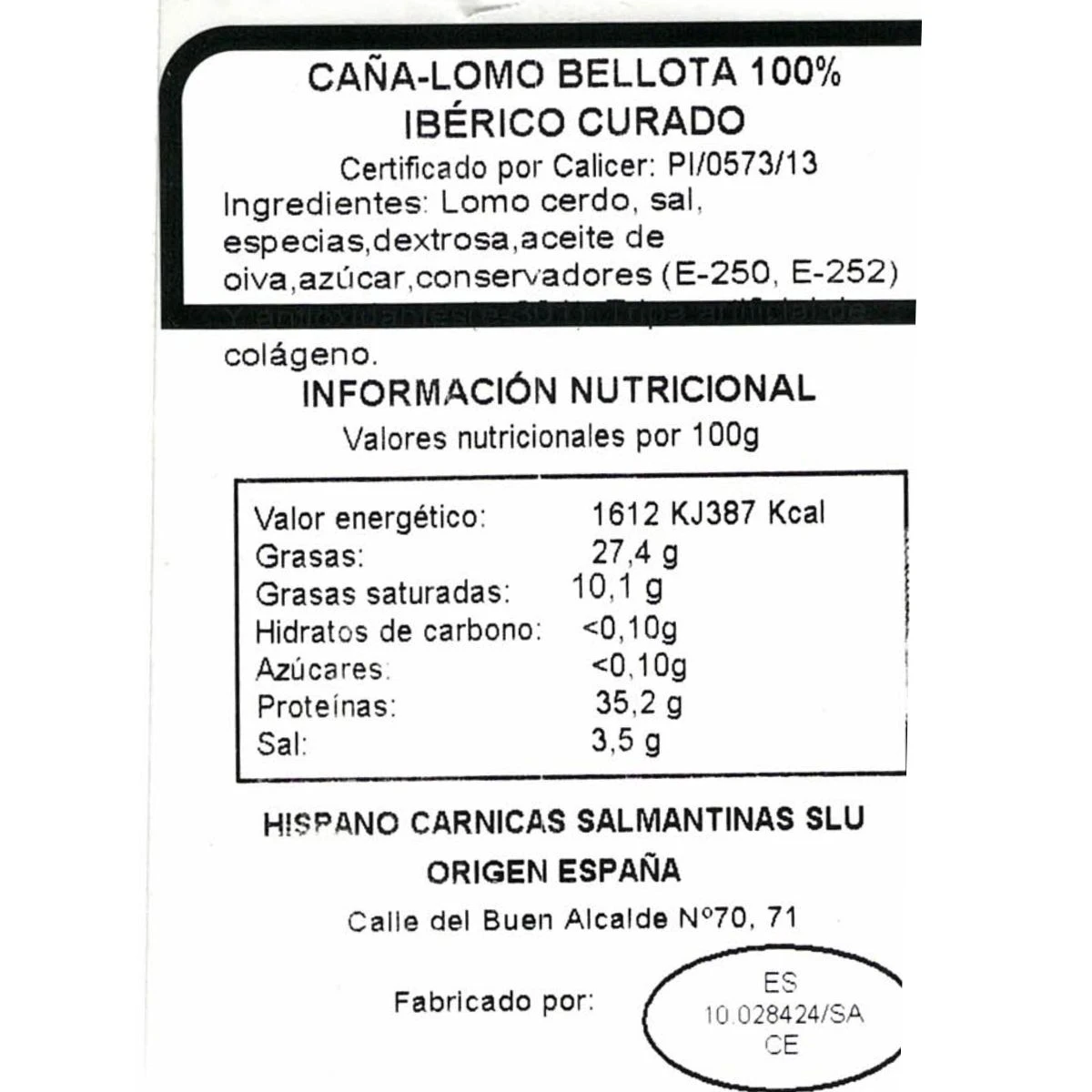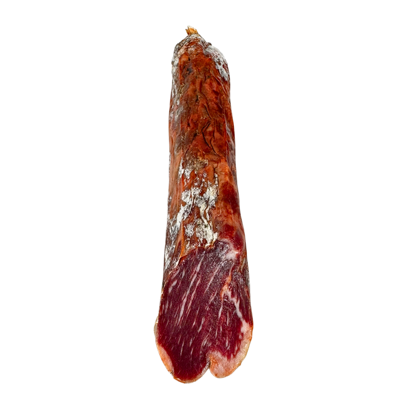 Esta pieza procedente de Caña de Lomo Bellota 100% Raza Ibérica, la parte lumbar del cerdo procede de cerdos criados en libertad en nuestra Finca La Solana y alimentados a base de bellota y pastos. Su corte se caracteriza por ser de color amarronado donde predominan las vetas de grasa infiltrada. Su excelente calidad combinada con su lento proceso de curación lo convierten en una pieza única, siendo así uno de nuestros productos estrella.
